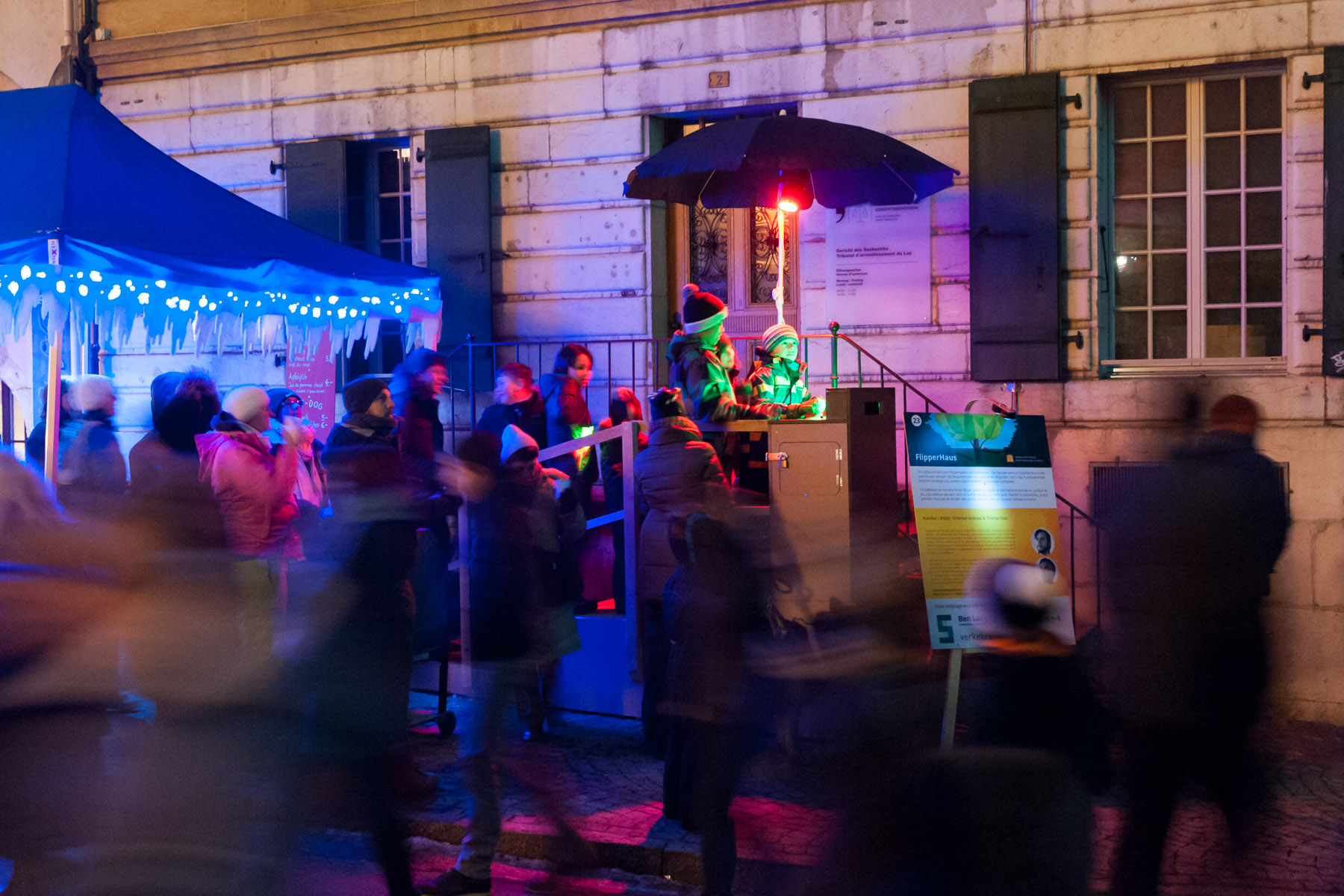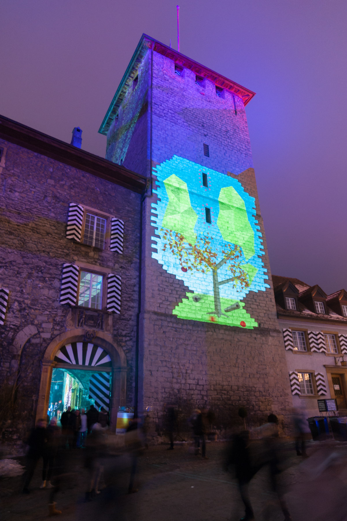 Das Künstler-Duo Elux + Schenkel bespielt am Murten Licht-Festival 2017 eine der Arteplages. Mittels interaktivem Projection Mapping wird der Schlossturm zum überdimensionalen Flipperkasten.